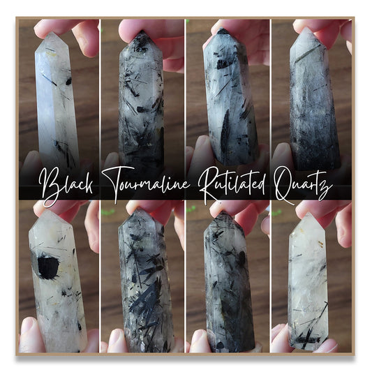 Black Tourmaline Rutilated Quartz Tower