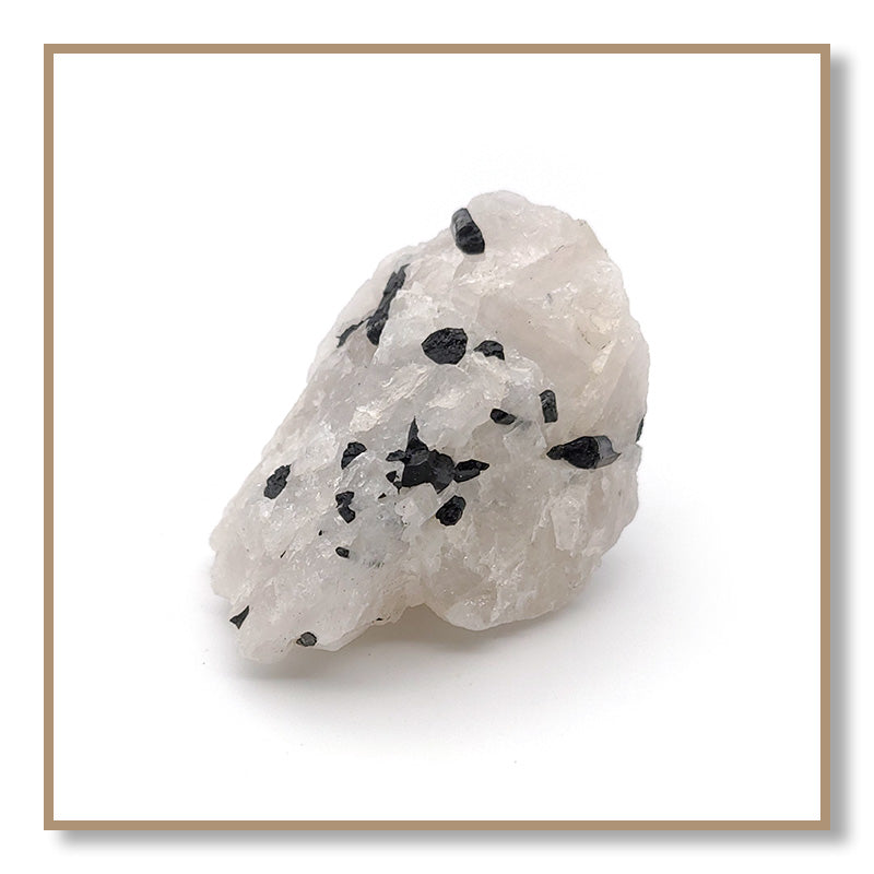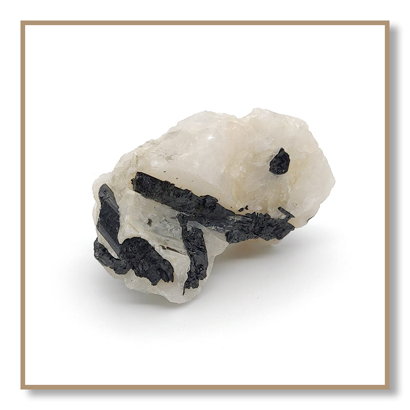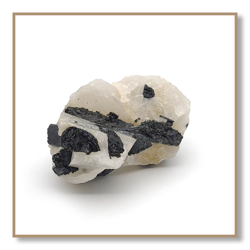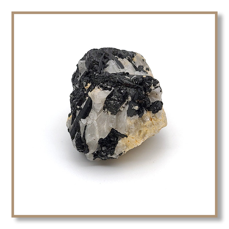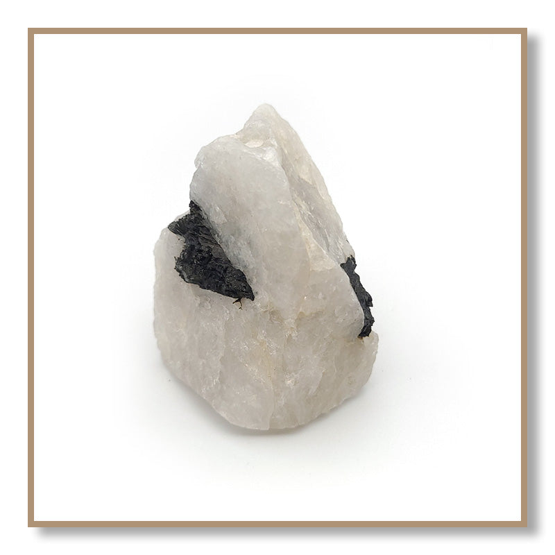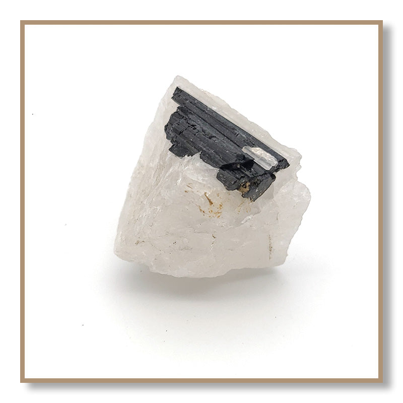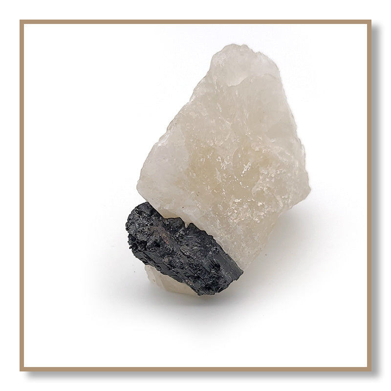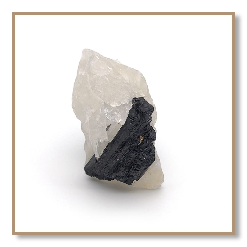 Black Tourmaline in Quartz combines the properties of Clear Quartz and Black Tourmaline. Tourmaline protects one from negativity, while Quartz amplifies the energy of Tourmaline. Black Tourmaline in Quartz helps one remain on their spiritual path and not be tempted to deviate to engage in harmful or addictive behaviors.